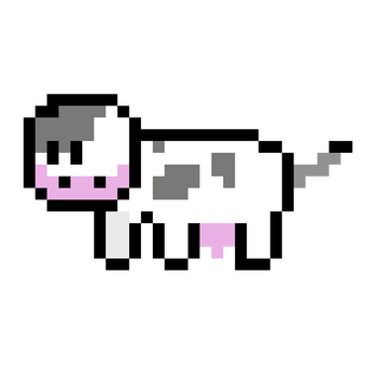 Cute pixel and upscaled cow with cute eyes